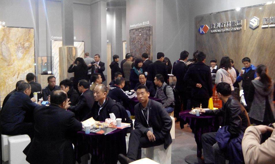 展會(huì)期間,康利的“別墅”賓朋云集,觀展者無(wú)不被天然石材鬼斧神工般的紋理,所拼配出的驚艷美圖駐足。