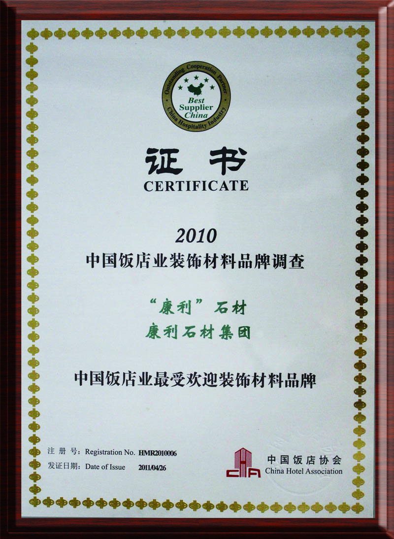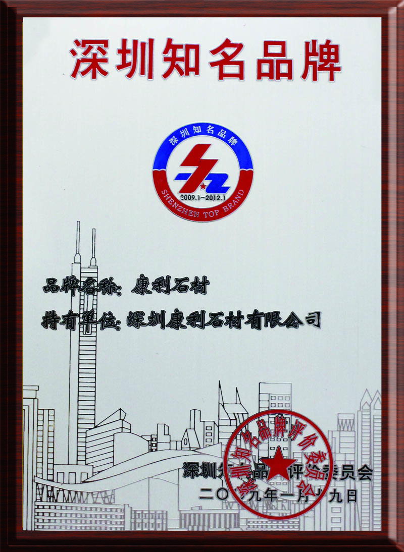康利相繼獲得"廣東省名牌產(chǎn)品"、"廣東省著名商標(biāo)"、"福建名牌產(chǎn)品"、"石材產(chǎn)品質(zhì)量信得過(guò)企業(yè)"、"中國(guó)石材十強(qiáng)企業(yè)"等,并繼續(xù)致力于成為中國(guó)石材行業(yè)第一品牌。